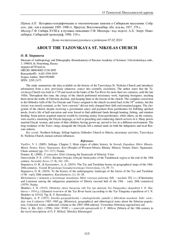 2. Герасимов П. Несколько слов о приходе Тазовской Николаевской церкви // Иркутские епархиальные ведомости. 1877. № 14. С. 189-200.