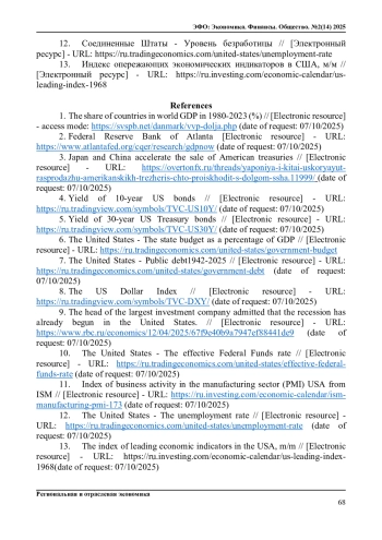 9. Глава крупнейшей инвесткомпании допустил, что в США уже началась рецессия. // [Электронный ресурс] - URL: https://www.rbc.ru/economics/12/04/2025/67f9e40b9a7947ef88441de9.