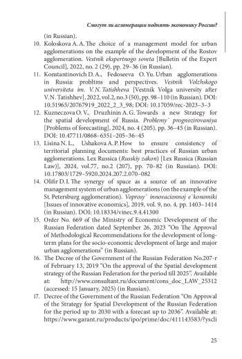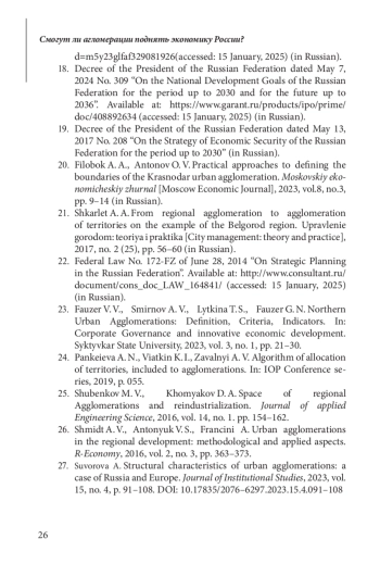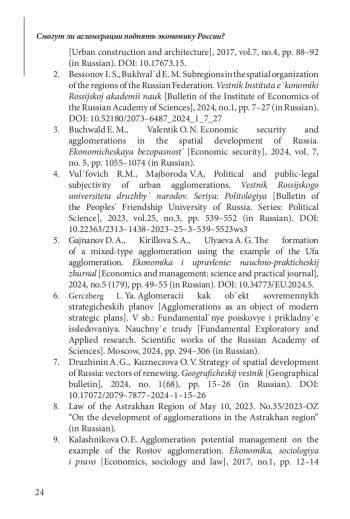 ИВАНОВ О. Б., БУХВАЛЬД Е. М. СМОГУТ ЛИ АГЛОМЕРАЦИИ ПОДНЯТЬ ЭКОНОМИКУ РОССИИ? // ЭТАП: ЭКОНОМИЧЕСКАЯ ТЕОРИЯ, АНАЛИЗ, ПРАКТИКА. 2025. № 1