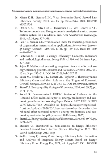 25. Mistry K. H., Lienhard J. H., V. An Economics-Based Second Law Efficiency // Entropy. 2013. Vol. 15. Pp. 2736-2765. 10.3390/ e15072736. DOI: 10.3390/e15072736