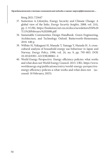36. Sudarshan A. Lifestyles, Energy Security and Climate Change: A global view of the links // Energy Security Insights. 2008. Vol. 2(4). Pp. 2-9. URL: https://bookstore.teri.res.in/docs/newsletters/ESI%207(1)%20February%202008.pdf (accessed: 10 February, 2025).