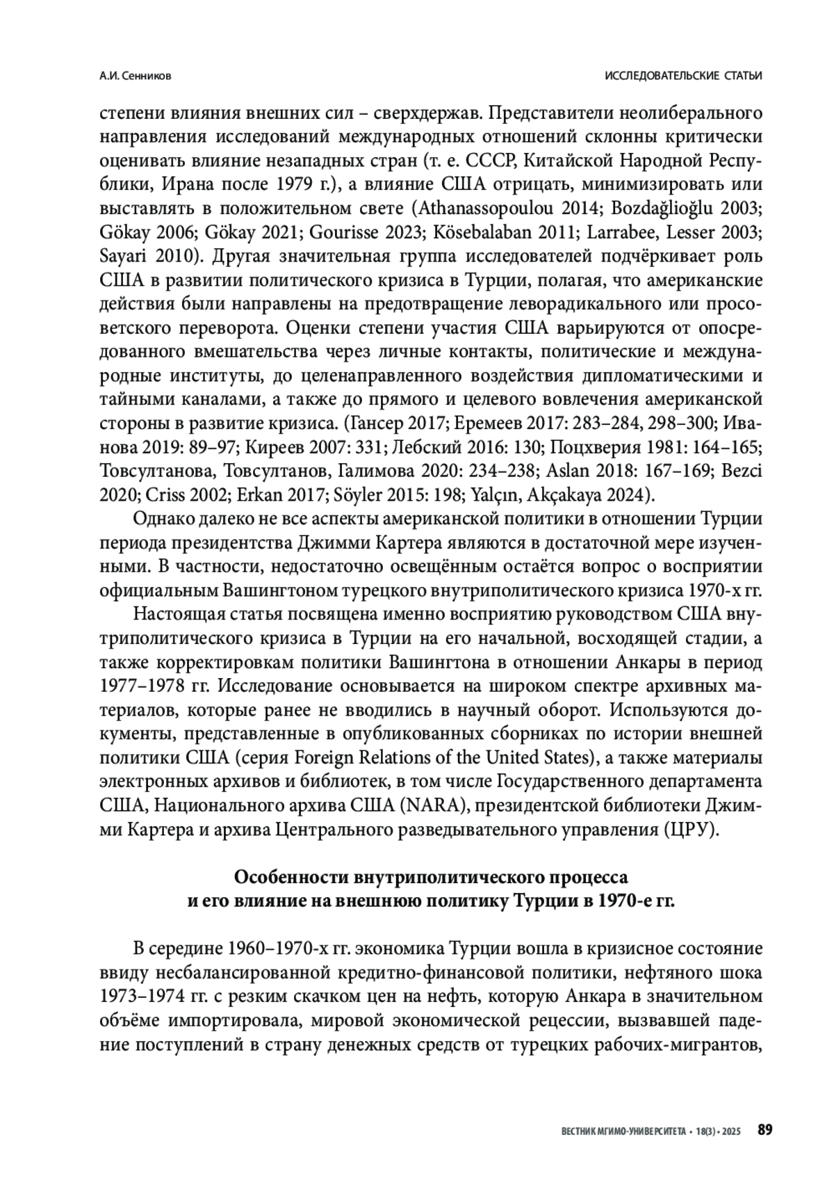 34. Шенин А.С. 2014. Турецкая политика США: генезис и эволюция в 1980-е гг. Известия Саратовского университета. Серия История. Международные отношения. Т. 14. Вып. 3. С. 54-58.