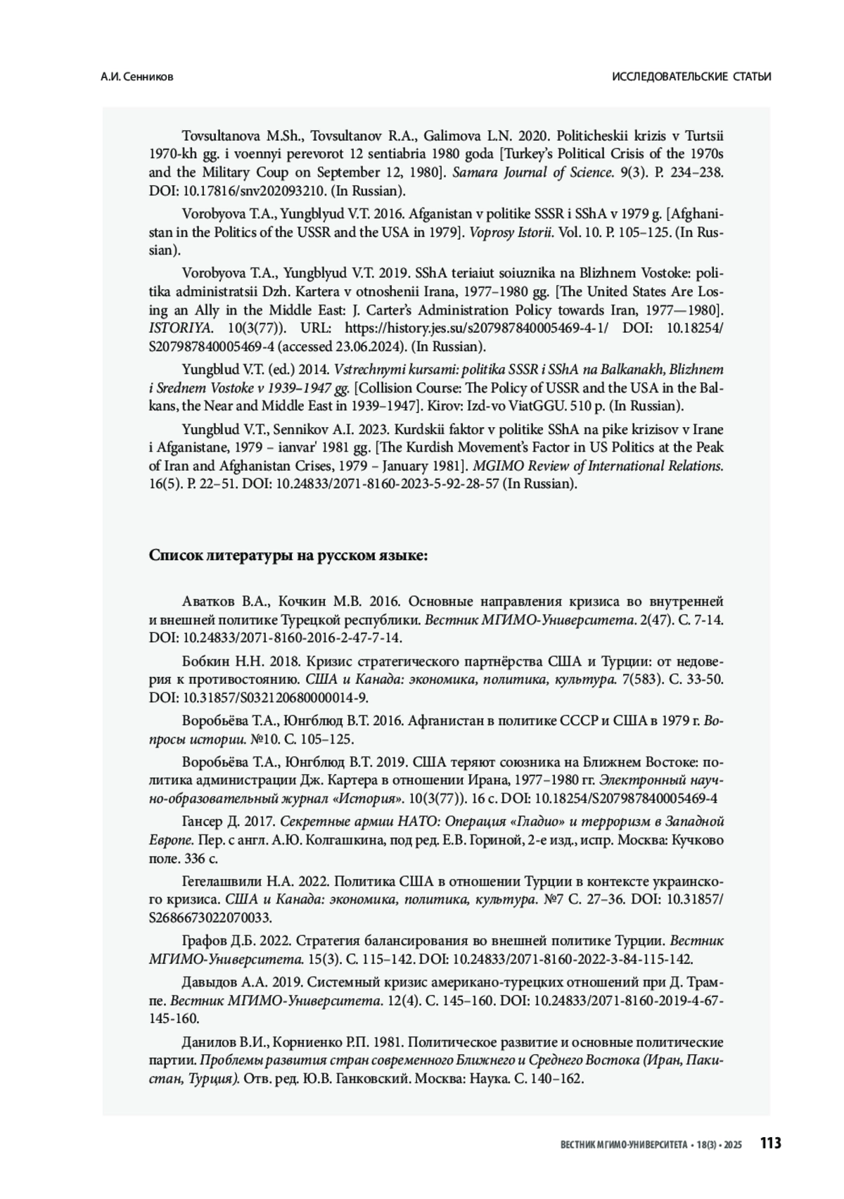 37. Юнгблюд В.Т., Сенников А.И. 2023. Курдский фактор в политике США на пике кризисов в Иране и Афганистане, 1979 - январь 1981 гг. Вестник МГИМО-Университета. № 16 (5). С. 22-51. https://doi.org/10.24833/2071-8160-2023-5-92-28-57