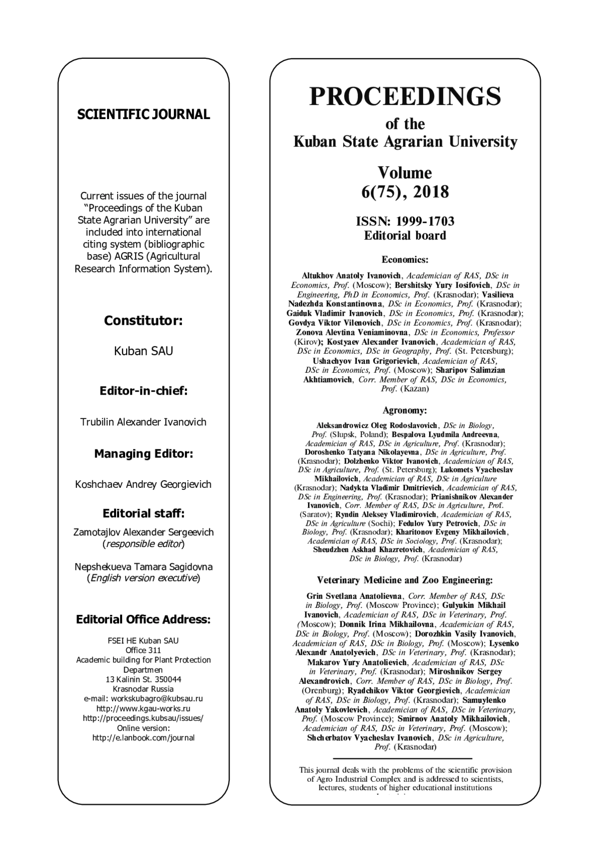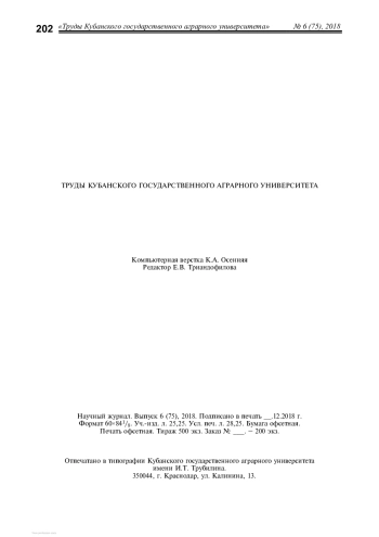 СЕРДЮК В. Ю., ЗАМОТАЙЛОВ А. С., БОНДАРЕНКО А. С. АГРОБИОЛОГИЧЕСКИЕ ОСОБЕННОСТИ И ХОЗЯЙСТВЕННОЕ ЗНАЧЕНИЕ НЕКОТОРЫХ ВИДОВ ПОЛЕВЫХ ЖУЖЕЛИЦ (COLEOPTERA, CARABIDAE) В АГРОЦЕНОЗАХ КРАСНОДАРСКОГО КРАЯ
