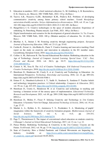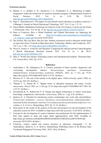 ИГНАТЬЕВА Э. А. АНАЛИЗ ПРАКТИКИ ПРИМЕНЕНИЯ КРЕАТИВНЫХ ТЕХНОЛОГИЙ В ОБРАЗОВАНИИ // ВЕСТНИК МИНИНСКОГО УНИВЕРСИТЕТА. 2024. ТОМ 12, № 1