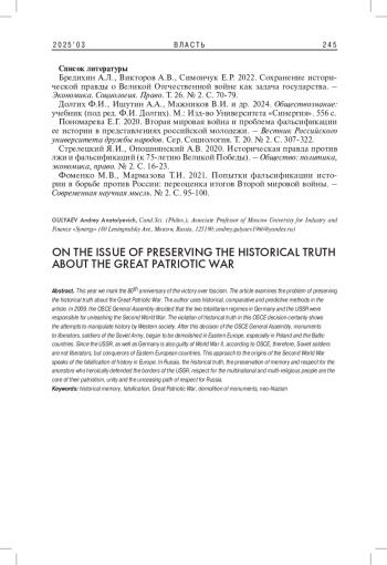 Статья: К ВОПРОСУ О СОХРАНЕНИИ ИСТОРИЧЕСКОЙ ПРАВДЫ О ВЕЛИКОЙ ОТЕЧЕСТВЕННОЙ ВОЙНЕ (2025)
