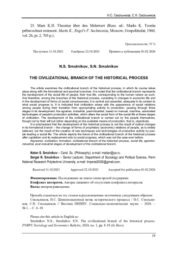 СМОЛЬНИКОВ Н. С., СМОЛЬНИКОВ С. Н. ЦИВИЛИЗАЦИОННАЯ ВЕТВЬ ИСТОРИЧЕСКОГО ПРОЦЕССА // ВЕСТНИК ПЕРМСКОГО НАЦИОНАЛЬНОГО ИССЛЕДОВАТЕЛЬСКОГО ПОЛИТЕХНИЧЕСКОГО УНИВЕРСИТЕТА. СОЦИАЛЬНО-ЭКОНОМИЧЕСКИЕ НАУКИ. 2024. № 1