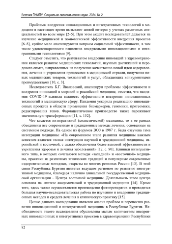 Рассмотрены проблемы и перспективы развития инновационной и интегративной медицины в Республике Бурятия, выявленные на основе проведенных автором социологических исследований. Необходимость такого исследования обусловлена малым количеством внедренных инновационных и интегративных проектов в здравоохранении Республики Бурятия по сравнению с другими регионами и недостаточной оценкой эффективности внедряемых технологий со стороны региональных органов управления здравоохранением. Выявлены изъяны организационно-методической работы регионального министерства здравоохранения по содействию инновационному развитию подведомственных медицинских организаций и внедрению медицинских инноваций. Предложено осуществлять мониторинг инновационной деятельности и реализуемых проектов медицинских организаций региона с использованием комплексных социолого-экономических методик. Дана оценка деятельности Центра ядерной медицины как медицинской организации инновационного типа, оказывающей высокотехнологичную медицинскую помощь и Центра восточной медицины как медицинской организации, оказывающей медицинскую помощь на основе интегративных методов лечения и реабилитации. Определены перспективные инновационные проекты, наиболее востребованные для регионального здравоохранения: совместный с ПАО «Сбербанк» проект «Цифровой ФАП» и система принятия врачебных решений «Электронный клинический фармаколог, апробируемая в ГАУЗ «Республиканская клиническая больница им. Н. А. Семашко». Представлена экспертная оценка внедрения инновационных технологий диагностики и лечения в ГАУЗ «Республиканская клиническая больница им. Н. А. Семашко». Сформулированы для регионального министерства здравоохранения и профильных медицинских организаций научно-практические рекомендации по внедрению инновационных и интегративных технологий в региональное здравоохранение с учетом передового мирового и российского опытов.