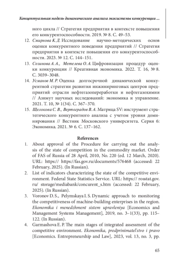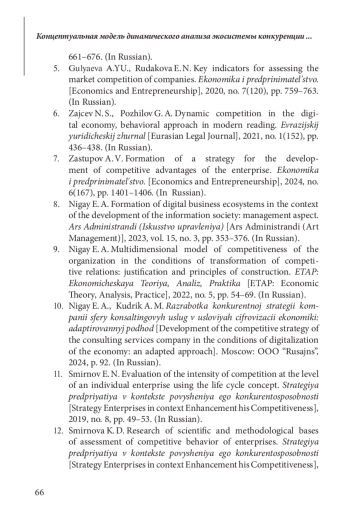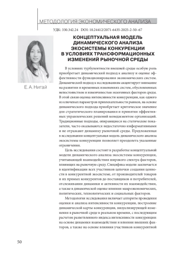 НИГАЙ Е. А. КОНЦЕПТУАЛЬНАЯ МОДЕЛЬ ДИНАМИЧЕСКОГО АНАЛИЗА ЭКОСИСТЕМЫ КОНКУРЕНЦИИ В УСЛОВИЯХ ТРАНСФОРМАЦИОННЫХ ИЗМЕНЕНИЙ РЫНОЧНОЙ СРЕДЫ // ЭТАП: ЭКОНОМИЧЕСКАЯ ТЕОРИЯ, АНАЛИЗ, ПРАКТИКА. 2025. № 2