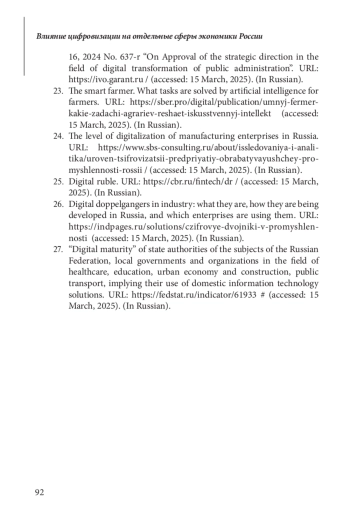 24. Уровень цифровизации предприятий обрабатывающей промышленности в России. URL: https://www.sbs-consulting.ru/ about/issledovaniya-i-analitika/uroven-tsifrovizatsii-predpriyatiy-obrabatyvayushchey-promyshlennosti-rossii/(дата обращения: 15 марта 2025 года).