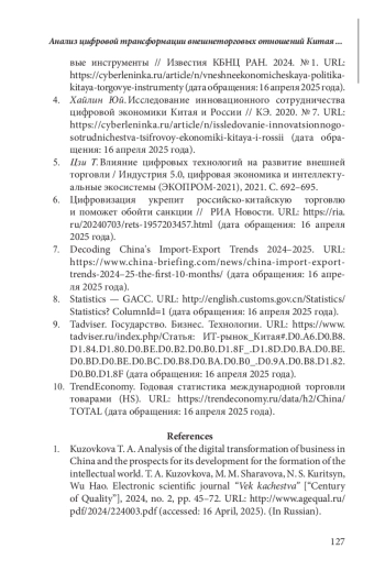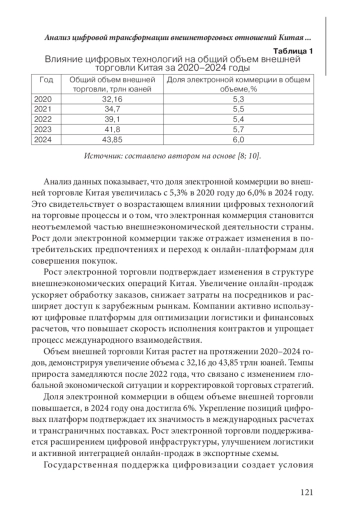 Статья: АНАЛИЗ ЦИФРОВОЙ ТРАНСФОРМАЦИИ ВНЕШНЕТОРГОВЫХ ОТНОШЕНИЙ КИТАЯ И ЕЕ ПЕРСПЕКТИВЫ (2025)