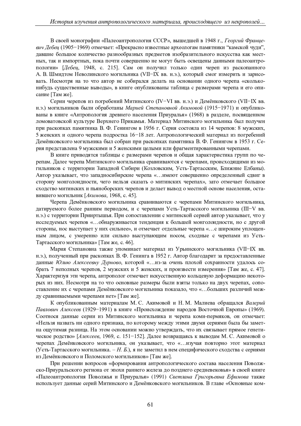 Статья: ИСТОРИЯ ИЗУЧЕНИЯ АНТРОПОЛОГИЧЕСКОГО МАТЕРИАЛА, ПРОИСХОДЯЩЕГО ИЗ НЕКРОПОЛЕЙ С ТЕРРИТОРИИ ПЕРМСКОГО ПРЕДУРАЛЬЯ (2024)
