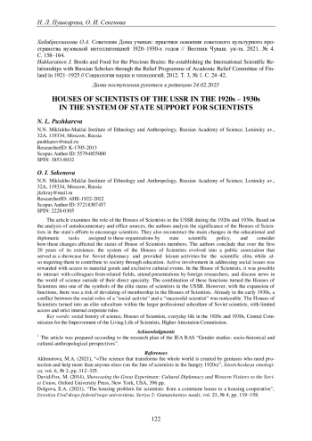 Статья: ФЕНОМЕН ДОМА УЧЕНЫХ В СИСТЕМЕ ГОСУДАРСТВЕННОЙ ПОДДЕРЖКИ НАУЧНЫХ РАБОТНИКОВ В 1920-1930-Е ГОДЫ (2024)