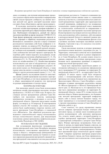 Целью исследования является качественная оценка условий проживания населения в пригородах Санкт-Петербурга, в том числе выявление отличий и общих закономерностей развития этих пригородов по разным направлениям от центра города. Материалы и методы. Использованы результаты онлайн-опроса жителей пригородов Санкт-Петербурга, по их отношению к комфортности проживания в своих населенных пунктах Результаты и обсуждение. В рамках установленных авторами условных границ пригородной зоны исследуемого региона выявлены типичные общие проблемы и схожие черты в развитии социальной жизни и связи с центром, а также различия северных, восточных и южных пригородов относительно условий проживания, транспортной доступности и самоидентификации. Заключение. По результатам качественной оценки жителями пригородов, участвующих в анкетировании, интересно было проследить степень влияния Санкт-Петербурга на образ жизни и особенности взаимодействия в системе «центр-пригород» в различных группах пригородных территорий. Существует необходимость проведения скоординированной пригородной «региональной политики»; большая часть населения пригородной зоны не планирует покидать её пределы; соответственно её развитие, в особенности пространственное, будет продолжаться и дальше.