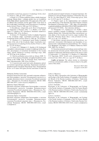 10. Крестов П.В. Растительность хребта Ливадийский II Ландшафтно-растительная поясность Ливадийского хребта (Южное Приморье), 2001, с. 7-28.