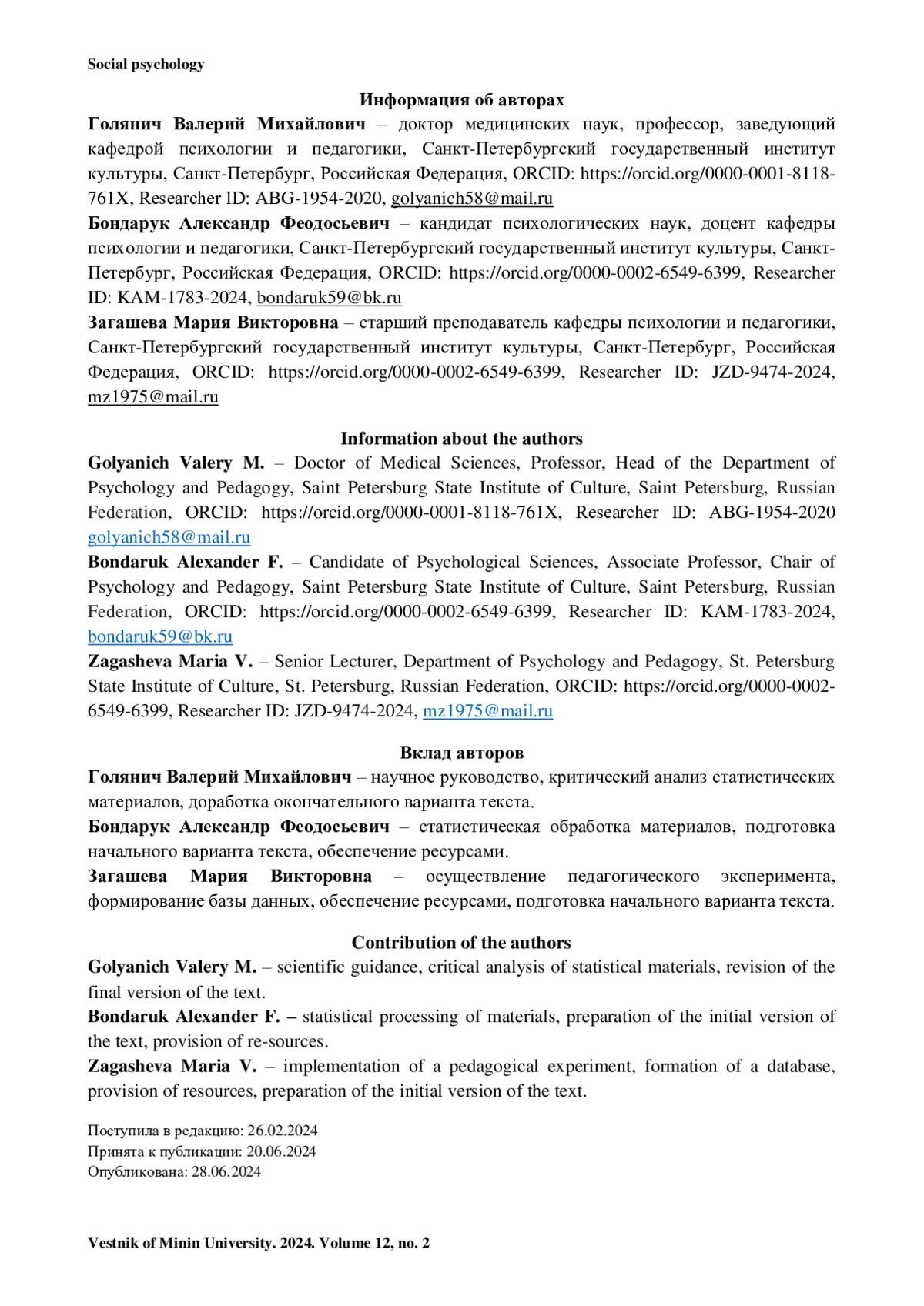 Журнал: ВЕСТНИК МИНИНСКОГО УНИВЕРСИТЕТА
