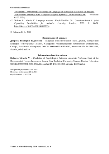 46. Walton E., Marais C. Language matters // Blatzk-Hawkins Ch., Greenham-Smith A. (eds) Expanding Possibilities for Inclusive Learning. London, 2022. P. 14-29. https://doi.org/10.4324/9781003137634.