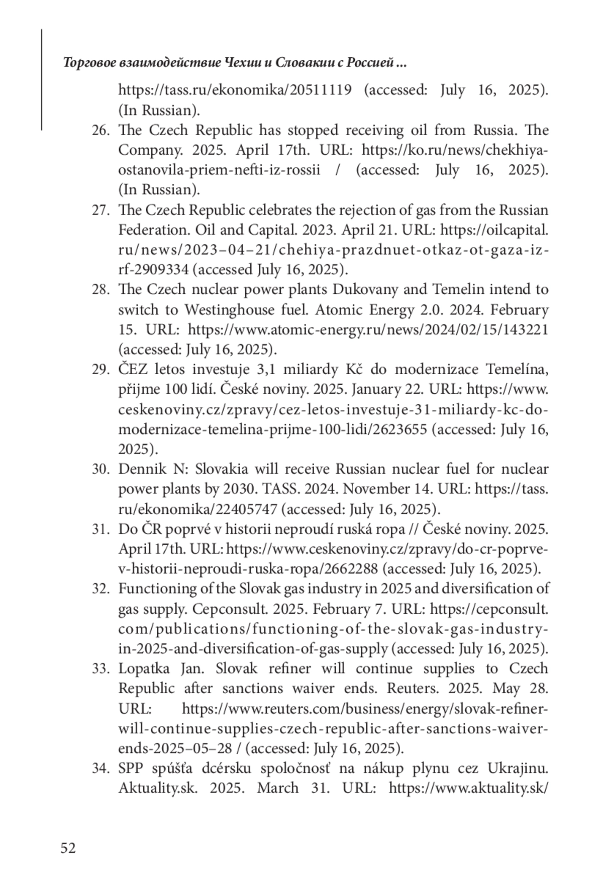33. Lopatka Jan. Slovak refiner will continue supplies to Czech Republic after sanctions waiver ends // Reuters. 2025. 28 мая. URL: https://www.reuters.com/business/energy/slovak-refiner-will-continue-supplies-czech-republic-after-sanctions-waiver-ends-2025-05-28/(дата обращения: 16 июля 2025 года).