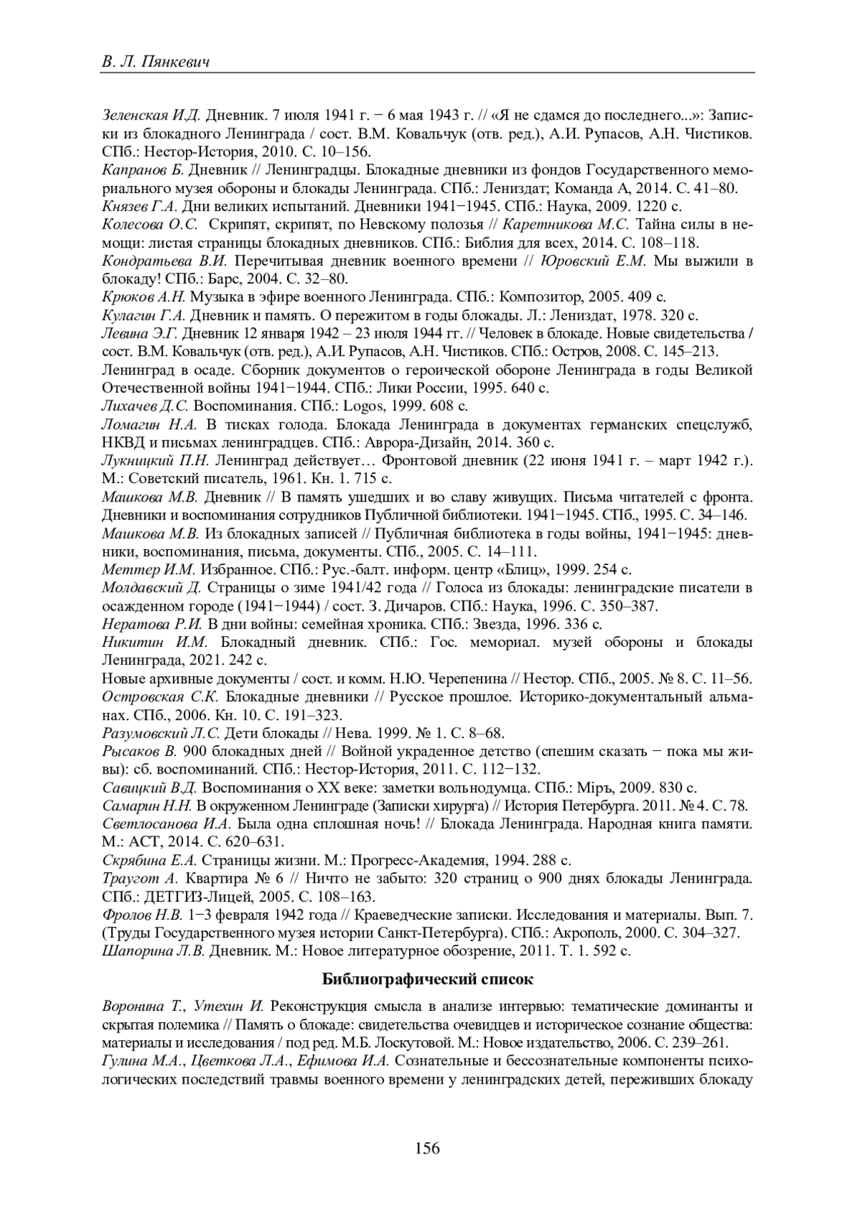 3. Рупасов А.И., Чистиков А.Н. Блокадные дневники: катастрофа в реальном времени // Записки оставшейся в живых. Блокадные дневники Татьяны Великотной, Веры Берхман, Ирины Зеленской. СПб.: Лениздат; Команда А, 2014. С. 7-14. EDN: YLVRNX
