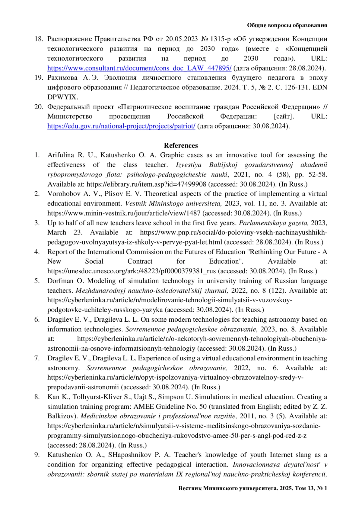 Журнал: ВЕСТНИК МИНИНСКОГО УНИВЕРСИТЕТА