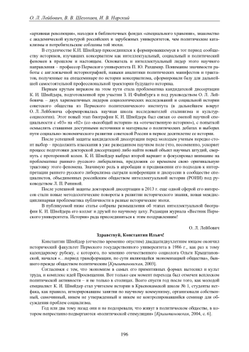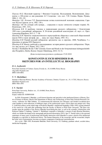 ЛЕЙБОВИЧ О. Л., ШЕЛОХАЕВ В. В., НАРСКИЙ И. В. КОНСТАНТИНУ ИЛЬИЧУ ШНЕЙДЕРУ - 60. НАБРОСКИ К ИНТЕЛЛЕКТУАЛЬНОЙ БИОГРАФИИ // ВЕСТНИК ПЕРМСКОГО УНИВЕРСИТЕТА. ИСТОРИЯ. 2024. № 1 (64)