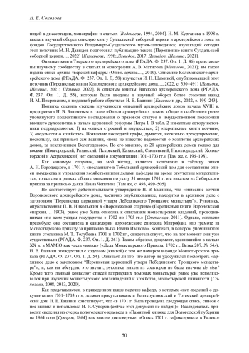 СОКОЛОВА Н. В. ВЕЛИКОУСТЮЖСКИЙ И ТОТЕМСКИЙ АРХИЕРЕЙСКИЙ ДОМ В НАЧАЛЕ XVIII ВЕКА: ИСТОРИОГРАФИЧЕСКИЙ И ИСТОЧНИКОВЕДЧЕСКИЙ АСПЕКТЫ // ВЕСТНИК ПЕРМСКОГО УНИВЕРСИТЕТА. ИСТОРИЯ. 2024. № 2 (65)