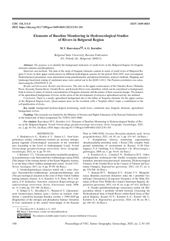 8. Оценка гидрохимического состояния малых рек Белгородской области в пределах сельских территорий / Киселев Вл. В., Корнилов А. Г., Киселев Вик. В., Корнилов А. А. // Региональные геосистемы, 2024, т. 48, № 3, с. 368-381. EDN: AVTLHT