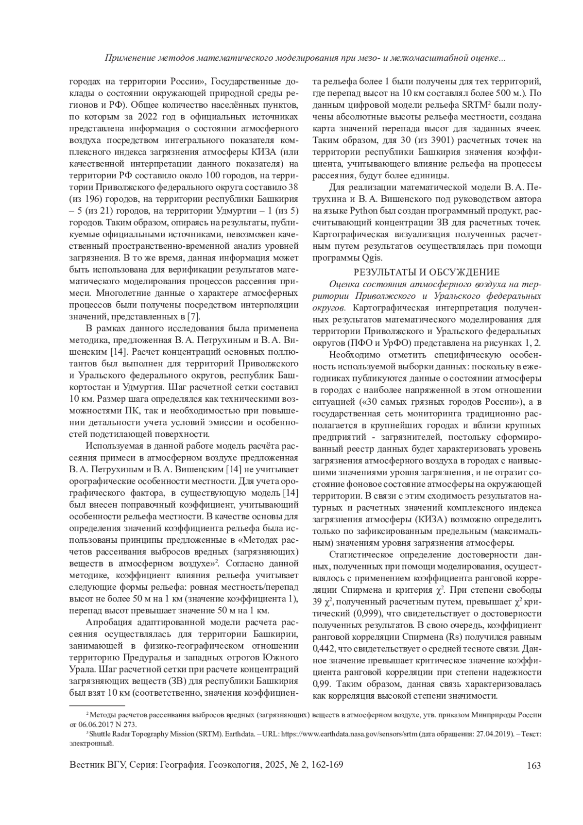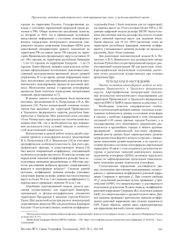 СЕМАКИНА А. В. ПРИМЕНЕНИЕ МЕТОДОВ МАТЕМАТИЧЕСКОГО МОДЕЛИРОВАНИЯ ПРИ МЕЗО- И МЕЛКОМАСШТАБНОЙ ОЦЕНКЕ СОСТОЯНИЯ АТМОСФЕРНОГО ВОЗДУХА // ВЕСТНИК ВОРОНЕЖСКОГО ГОСУДАРСТВЕННОГО УНИВЕРСИТЕТА. СЕРИЯ: ГЕОГРАФИЯ. ГЕОЭКОЛОГИЯ. 2025. № 2