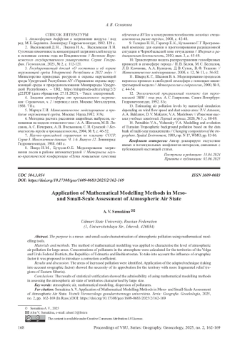Статья: ПРИМЕНЕНИЕ МЕТОДОВ МАТЕМАТИЧЕСКОГО МОДЕЛИРОВАНИЯ ПРИ МЕЗО- И МЕЛКОМАСШТАБНОЙ ОЦЕНКЕ СОСТОЯНИЯ АТМОСФЕРНОГО ВОЗДУХА (2025)