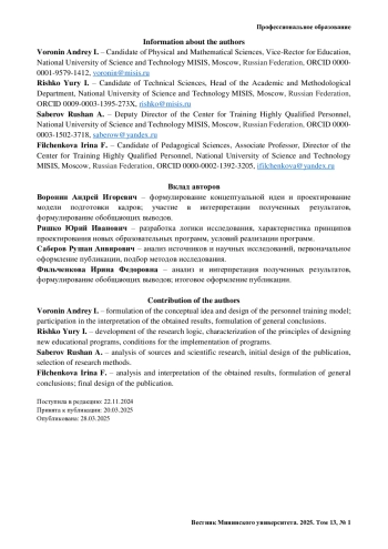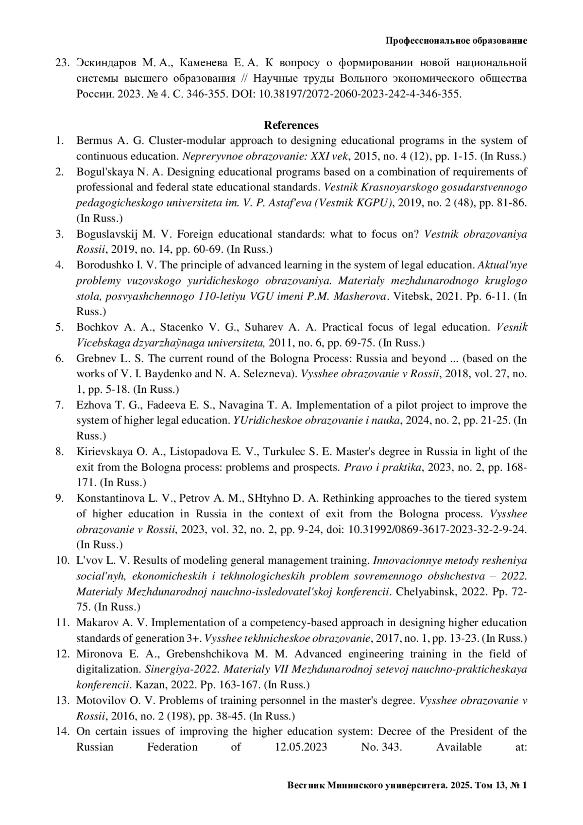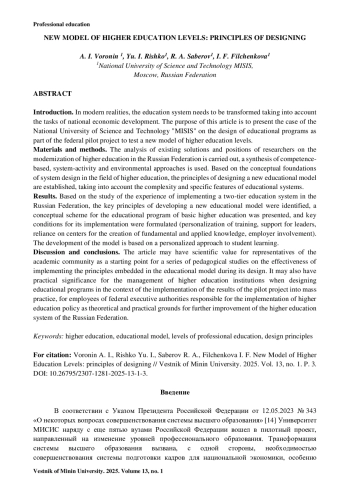 ВОРОНИН А. И., РИШКО Ю. И., САБЕРОВ Р. А., ФИЛЬЧЕНКОВА И. Ф. НОВАЯ МОДЕЛЬ УРОВНЕЙ ВЫСШЕГО ОБРАЗОВАНИЯ: ПРИНЦИПЫ ПРОЕКТИРОВАНИЯ // ВЕСТНИК МИНИНСКОГО УНИВЕРСИТЕТА. 2025. ТОМ 13, № 1