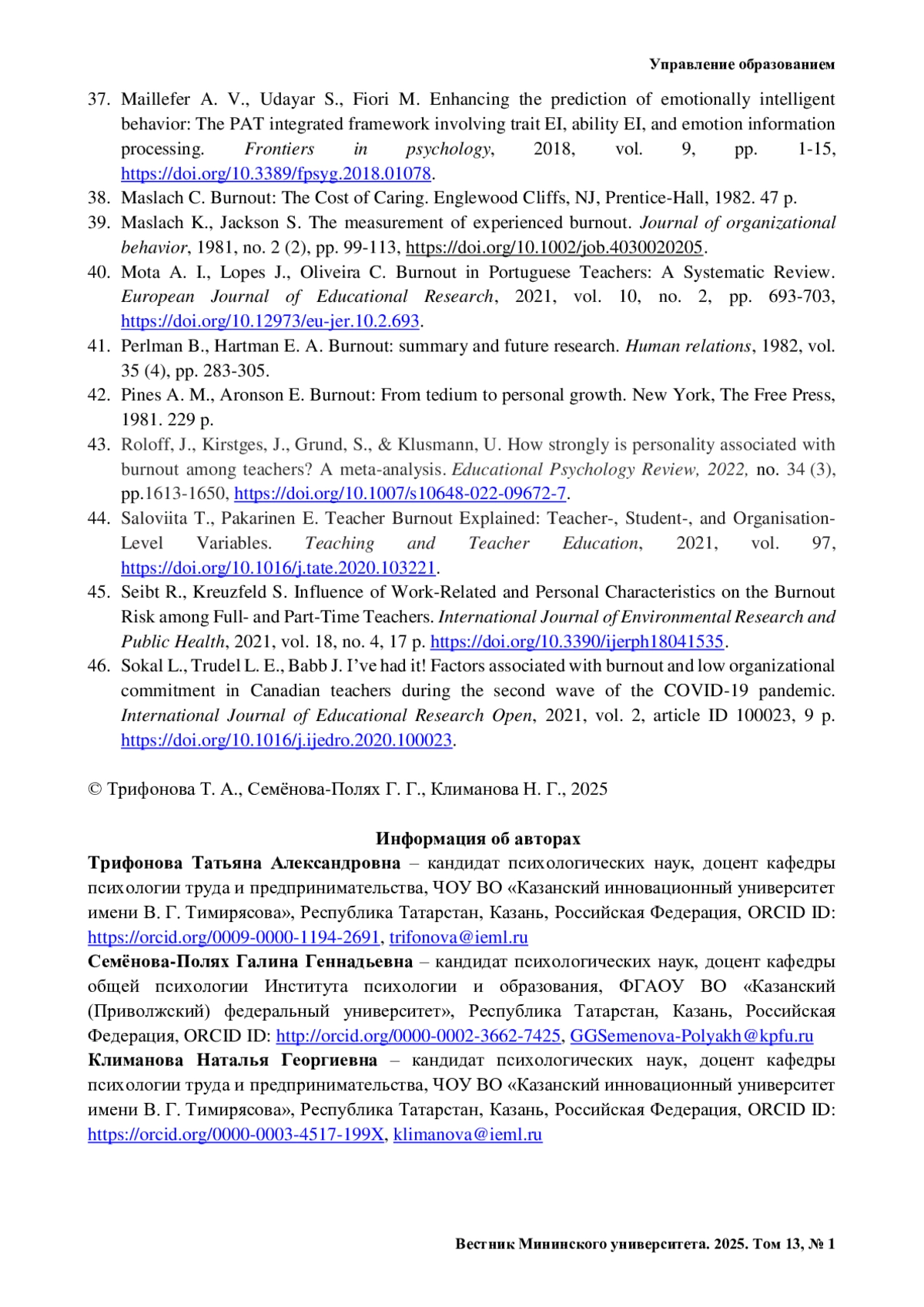 43. Roloff, J., Kirstges, J., Grund, S., & Klusmann, U. How strongly is personality associated with burnout among teachers? A meta-analysis // Educational Psychology Review. 2022. No. 34 (3). Pp. 1613-1650. https://doi.org/10.1007/s10648-022-09672-7.