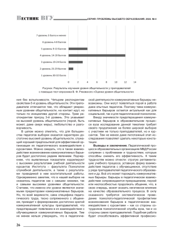 Взаимодействие между преподавателями и обучающимися состоит не только в том, чтобы передать знания, но и в том, чтобы обеспечить полное понимание материала. Другими словами, в межличностном общении толкование информации, полученной обучающимся от педагога, и наоборот, является особой проблемой. В связи с этим в статье рассмотрены разные виды барьеров педагогического взаимодействия, выделяемые различными авторами, в частности: этно-социокультурная, статусно-позиционно-ролевая, возрастная, индивидуально-психологическая область затруднений и барьер в процессе общения при осуществлении самой деятельности. В целях выявления барьеров в педагогическом взаимодействии с курсантами в образовательном процессе было проведено пилотажное исследование с использованием тест-опросника В. Ф. Ряховского «Оценка уровня общительности».