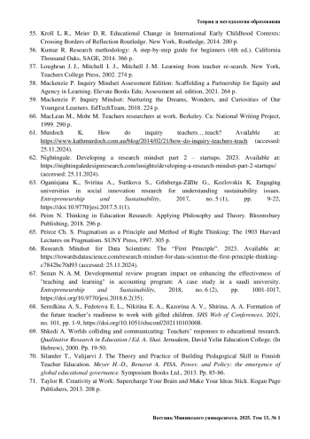 47. Diezmann C. M. Growing scholarly teachers and educational re-searchers: A curriculum for a research pathway in pre-service teacher education // Asia-Pacific Journal of Teacher Education. 2005. No. 33 (2). Рр. 181-193.