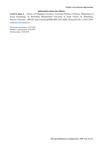 16. Лескова И. А. Идея образования: структура и содержание в контексте смены философских оснований // Вестник Мининского университета. 2021. Т. 9, № 3 (36). https://doi.org/10.26795/2307-1281-2021-9-3-10.