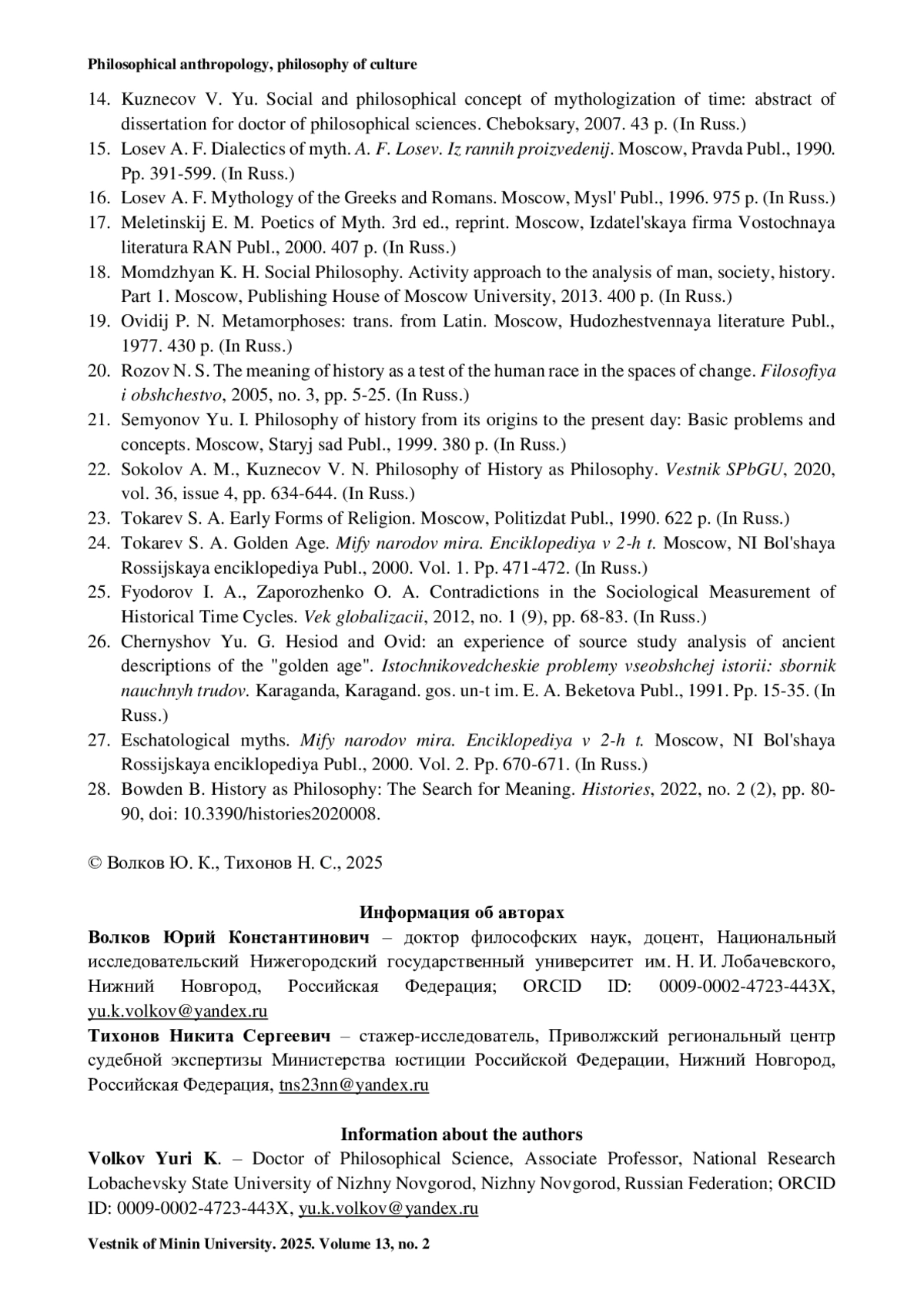 14. Кузнецов В. Ю. Социально-философская концепция мифологизации времени: автореф. дис. … д-ра филос. наук. Чебоксары, 2007. 43 с.