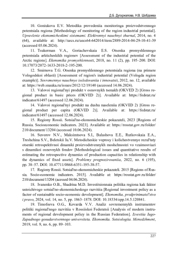4. Гагарина, Г.Ю. Региональные особенности использования производственного потенциала макрорегиона как фактора устойчивости экономики России / Г.Ю. Гагарина, Л.С. Архипова // Вестник Российского экономического университета имени Г.В. Плеханова. - 2017. - № 4. - С. 126-137. 10.21686/ 2413-2829-2017-4-126-137. DOI: 10.21686/2413-2829-2017-4-126-137 EDN: ZEWFDZ