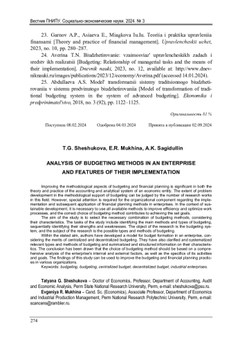 19. Носкова, Н.Ю. Причины возникновения ошибок при реализации бюджетирования на предприятии / Н.Ю. Носкова // Наука и инновации - современные концепции. - 2023. - № 1. - С. 7-12. EDN: SGMUFC