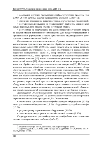6. Саханов, В.В. Рынок деревообрабатывающего оборудования: состояние и перспективы / В.В. Саханов, А.А. Фитчин // Экономика высокотехнологичных производств. - 2020. - Т. 1, № 2. - С. 63-76. EDN: JCJVTC