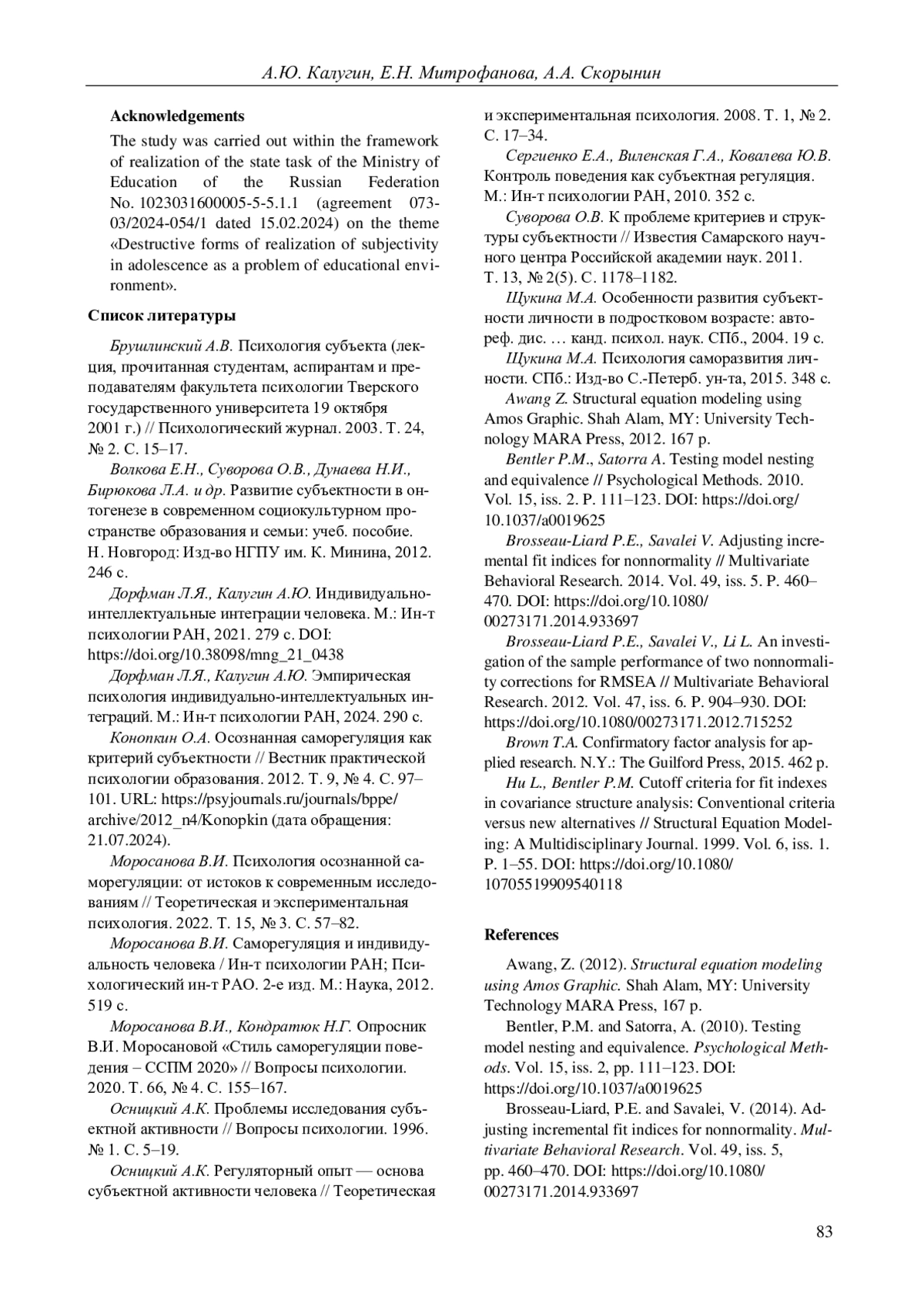 16. Bentler P.M., Satorra A. Testing model nesting and equivalence // Psychological Methods. 2010. Vol. 15, iss. 2. P. 111-123. DOI: 10.1037/a0019625