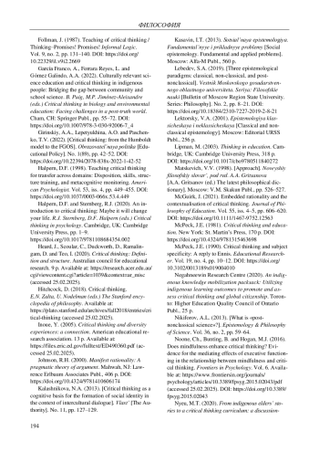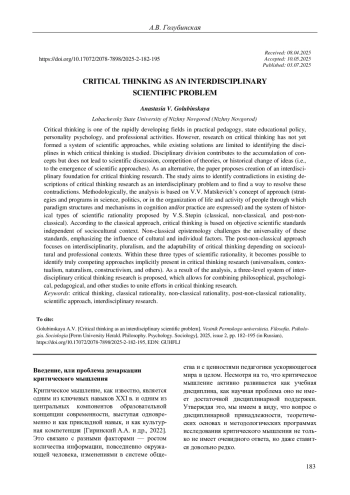 ГОЛУБИНСКАЯ А. В. КРИТИЧЕСКОЕ МЫШЛЕНИЕ КАК МЕЖДИСЦИПЛИНАРНАЯ НАУЧНАЯ ПРОБЛЕМА // ВЕСТНИК ПЕРМСКОГО УНИВЕРСИТЕТА. ФИЛОСОФИЯ. ПСИХОЛОГИЯ. СОЦИОЛОГИЯ. 2025. № 2