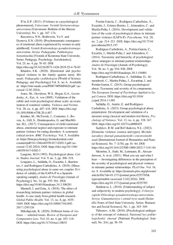 34. Porrúa-García C., Rodríguez-Carballeira Á., Escartín J., Gómez-Benito J., Almendros C., Martín-Peña J. Development and validation of the scale of psychological abuse in intimate partner violence (EAPA-P) // Psicothema. 2016. Vol. 28, no. 2. P. 214-221. DOI: 10.7334/psicothema2015.197