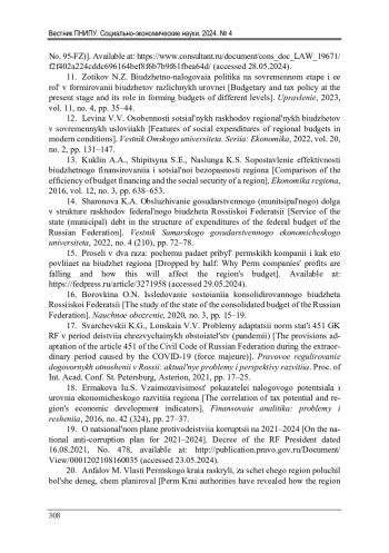 3. Осипова, Д.А. Особенности региональных бюджетов: цифры и факты / Д.А. Осипова // Города и местные сообщества. - 2022. - Т. 1. - С. 6-21. EDN: NGQPMY