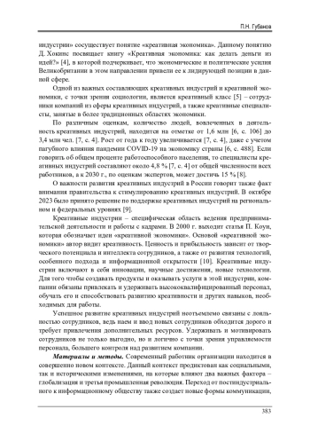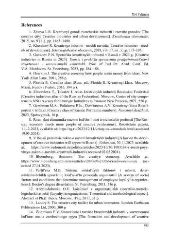 Ключевые фразы: ЛОЯЛЬНОСТЬ ПЕРСОНАЛА, КРЕАТИВНЫЕ ИНДУСТРИИ, КРЕАТИВНЫЙ КЛАСС, креативный город, ТВОРЧЕСКИЕ ИНДУСТРИИ, творческий класс