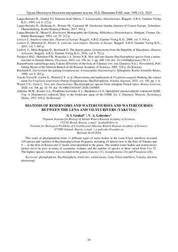 3. Генкал C.И., Габышев В.А. Каталог диатомовых водорослей водоемов Усть-Ленского заповедника и сопредельных территорий. Новосибирск: Наука, 2023. 128 c.