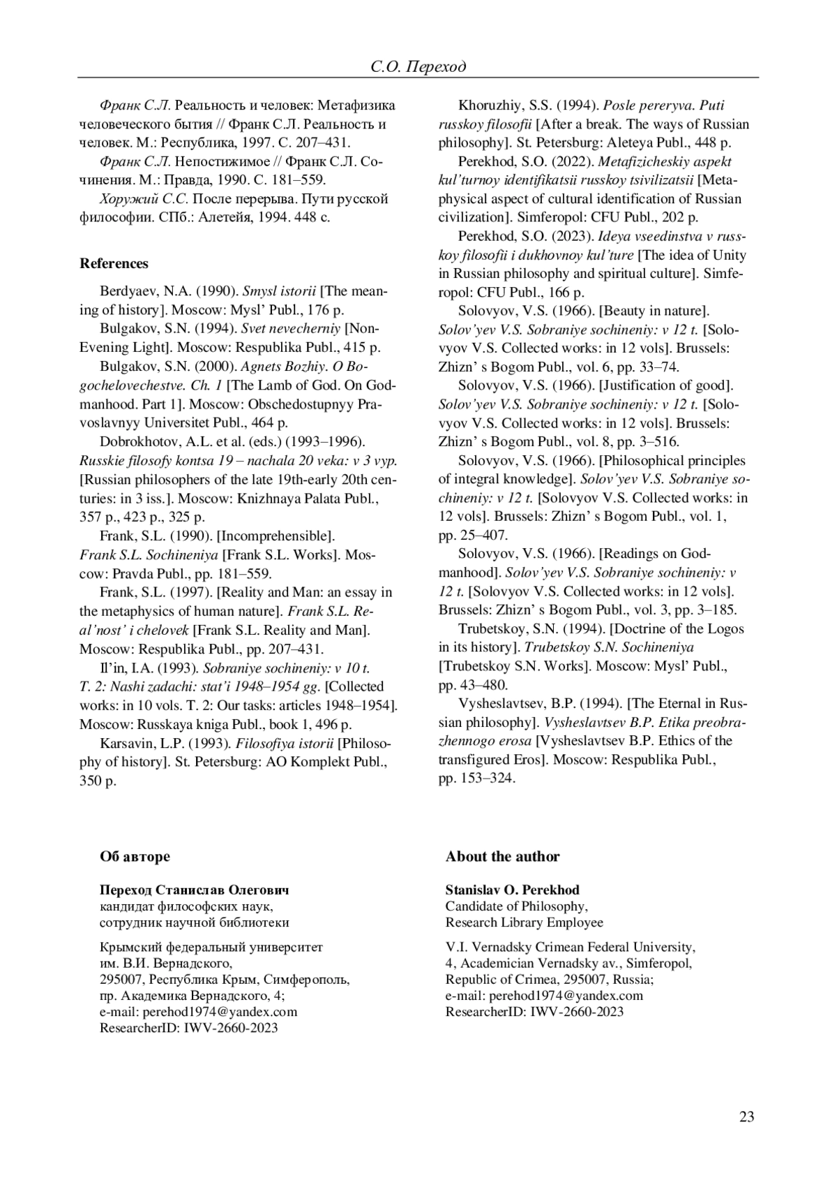 7. Переход С.О. Идея всеединства в русской философии и духовной культуре. Симферополь: Изд-во КФУ им. В.И. Вернадского, 2023. 166 с.