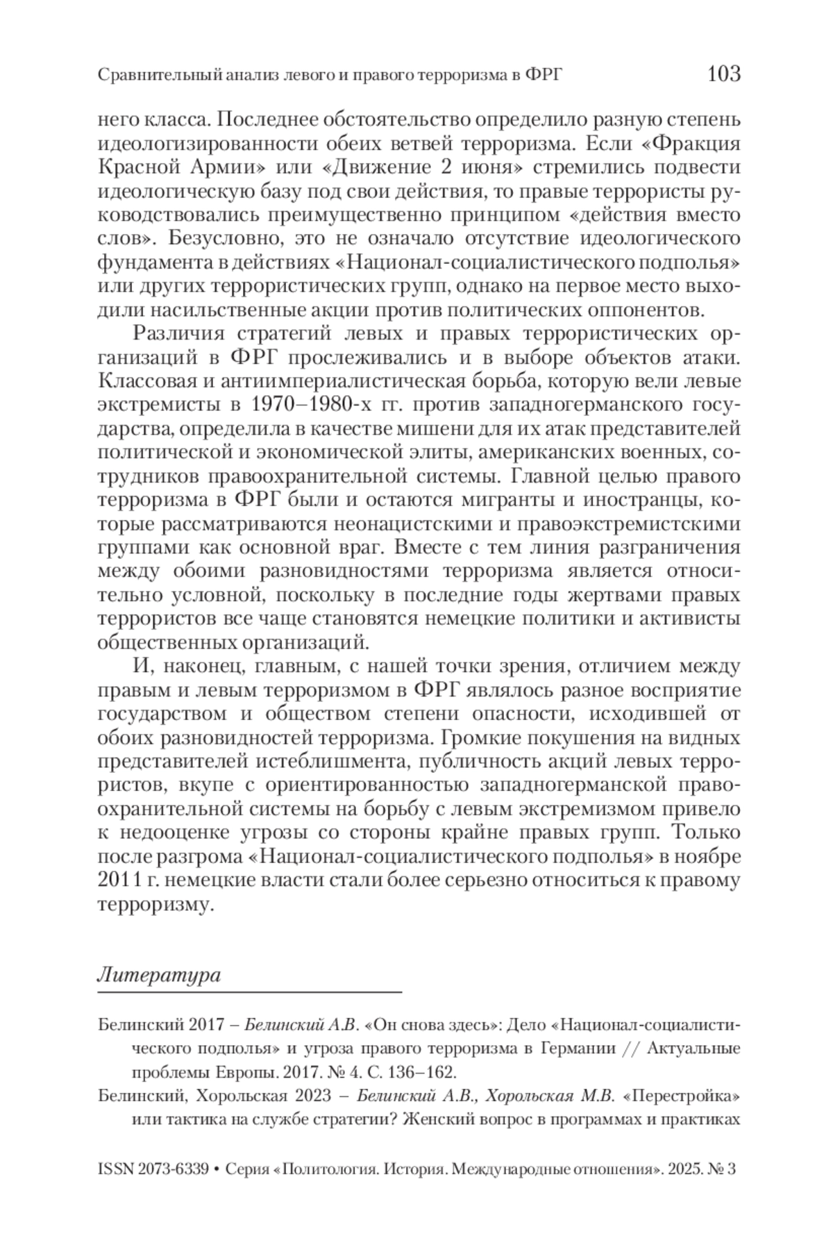 1. Белинский 2017 - Белинский А.В. «Он снова здесь»: Дело «Национал-социалистического подполья» и угроза правого терроризма в Германии // Актуальные проблемы Европы. 2017. № 4. С. 136-162.