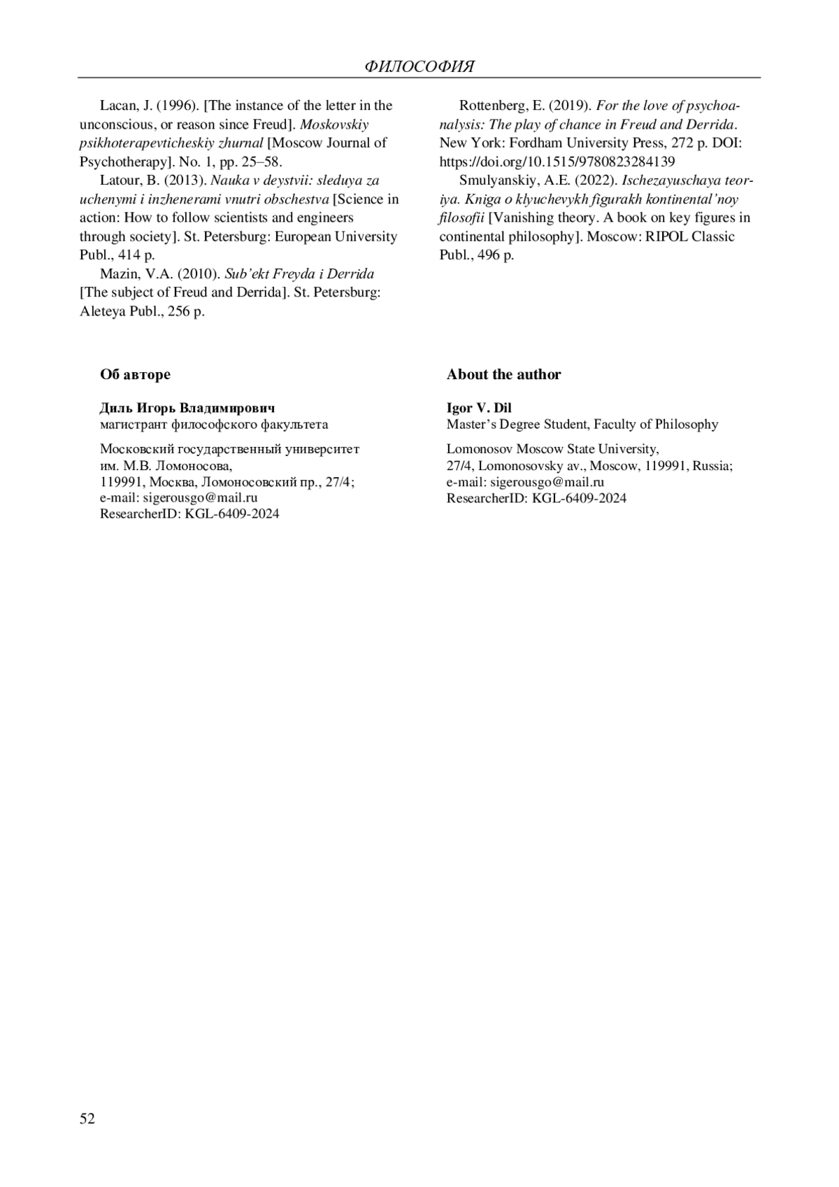 10. Мазин В.А. Субъект Фрейда и Деррида. СПб.: Алетейя, 2010. 256 с.