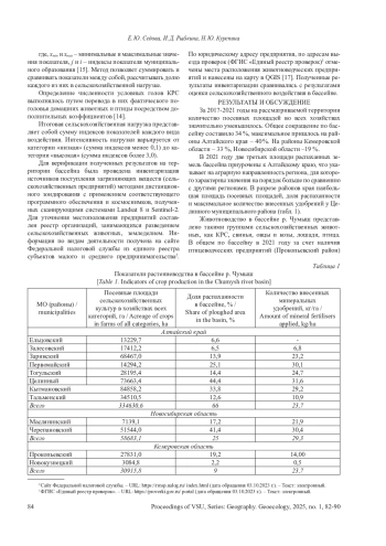 В 2021 году две третьих площади распаханных земель бассейна приурочены к Алтайскому краю, что указывает на аграрную направленность региона, для которого характерны значения на порядок больше по сравнению с другими регионами. В разрезе районов края наибольшая площадь посевных площадей, доля распаханности и максимальное количество внесенных удобрений у Целинного муниципального района (табл. 1).