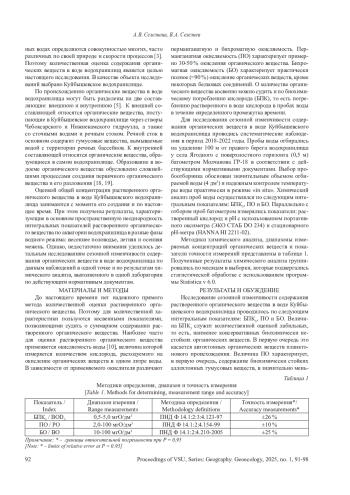 Статья: СЕЗОННАЯ ИЗМЕНЧИВОСТЬ СОДЕРЖАНИЯ РАСТВОРЕННЫХ ОРГАНИЧЕСКИХ ВЕЩЕСТВ В ВОДЕ КУЙБЫШЕВСКОГО ВОДОХРАНИЛИЩА (2025)
