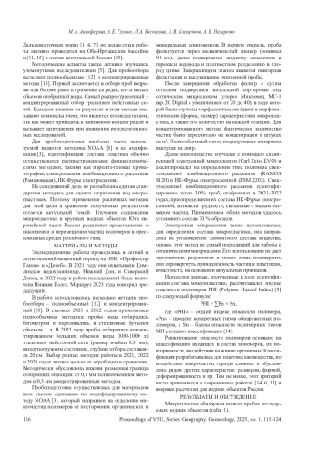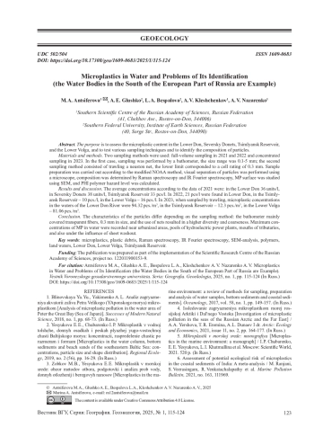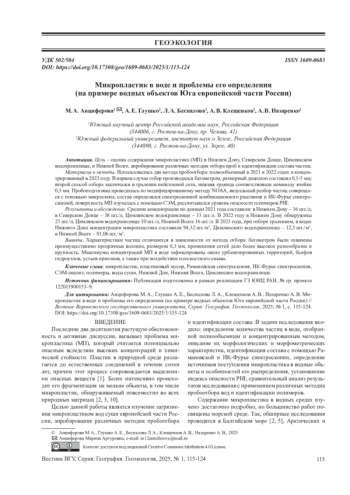 Статья: МИКРОПЛАСТИК В ВОДЕ И ПРОБЛЕМЫ ЕГО ОПРЕДЕЛЕНИЯ (НА ПРИМЕРЕ ВОДНЫХ ОБЪЕКТОВ ЮГА ЕВРОПЕЙСКОЙ ЧАСТИ РОССИИ) (2025)